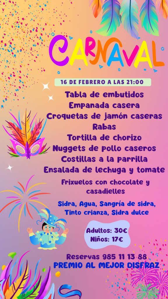 Cena de carnaval el 16 de febrero en Llagar Bernueces.